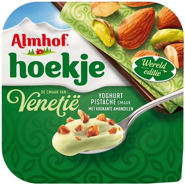 | Ingredients | Ingrediënten: YOGHURT, water, suiker, 3,1% MELKEIWITTEN, dextrose, gemodificeerd zetmeel, 0,1% PISTACHE, karamelsuikerstroop, kleurstof (kopercomplexen van chlorofylen en chlorofylinen), voedingszuur (melkzuur), verdikkingsmiddel (pectinen), zout, aroma (MELK) , 8,7% krokante amandelen:50% AMANDELEN, suiker Kan sporen van gluten, soja, pinda's, ei en andere noten bevatten. |