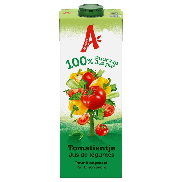 | Ingredients | Ingrediënten: Tomaten-groentesap uit concentraat (tomaat 85%, SELDERIJ 9,7%, wortel, paprika 2,5%, rode biet, lavas, citroen, spinazie, ui, peterselie, basilicum), zout, vitamine C. |