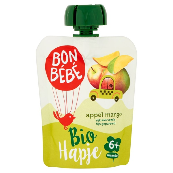 | Ingredients | Ingrediënten :85% Appelpuree*, 15% mangopuree*, antioxidant: ascorbinezuur. *van biologische oorsprong |