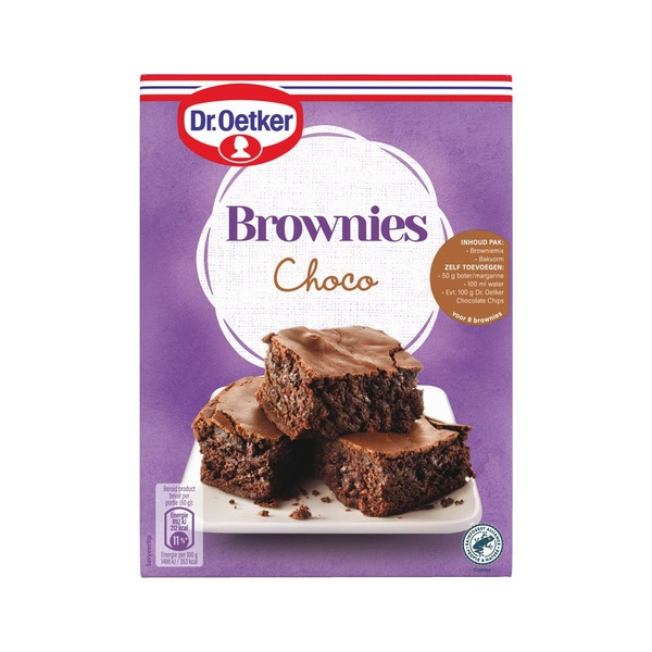 | Ingredients | Ingrediënten Browniemix: poedersuiker, TARWEBLOEM, 8.9% magere cacaopoeder, maïszetmeel, KIPPENEIWITPOEDER, gemodificeerd aardappelzetmeel, zout, rijsmiddelen (E500ii, E450i, E341i), aroma. Kan bevatten: MELK. |