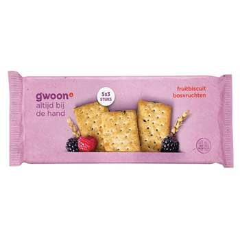 | Ingredients | Ingrediënten :TARWEBLOEM, 21% rozijnen, volkoren TARWEMEEL, 8% bosvruchtenvulling (glucose-fructosestroop, suiker, bevochtigingsmiddel: glycerine, 7,6% fruitpuree (braam, rode bes, framboos), TARWEZEM |