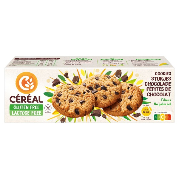 | Ingrediënten | Suiker, palmvet, maïsbloem, teffmeel, pure chocoladestukjes 9,2% (cacaomassa, suiker, cacaoboter, emulgator: SOJAlecithinen, natuurlijk vanille-aroma), rijstbloem, tapiocazetmeel, glucosestroop, antioxidant: zwaveldioxide, aroma, emulgator: koolzaadleci |