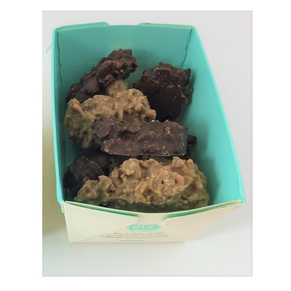 | Ingrediënten (allergenen in kapitalen) | Ingrediënten: Suiker, HAZELNOTEN, cacaomassa, cacaoboter, TARWE, HAVERvlokken, GERST, ROGGE, rietsuiker, TARWEstroop, volle MELKpoeder, pompoenzaden, AMANDELEN, WALNOTEN, zonnebloempitten*, plantaardige olie(zonnebloem), TARWEbloem, cranberry s, TARWEzemelen, weipoeder (MELK), emulgatoren(SOJAlecithine,E476), cacaokernen*, magere cacaopoeder , natuurlijk vanille-aroma, PISTACHENOTEN, framboos, kruiden en specerijen(paprika-extract). E= door de EU goedgekeurde hulpstof. * = van biologische oorsprong. Kan sporen bevatten van sesam, pinda's en andere noten. |