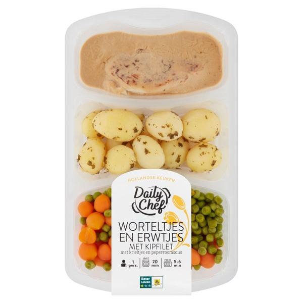 Daily Chef worteltjes en erwtjes met kipfilet en krieltjes Doos 500 gram