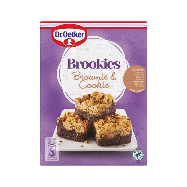 | Ingrediënten | Ingrediënten: Browniemix (200 gram): suiker, TARWEBLOEM, magere cacaopoeder, zout, rijsmiddelen (E 450, E 500)., Chocolate chip cookiemix (230 gram): TARWEBLOEM, suiker, 18% chocolade (suiker, cacaoma |