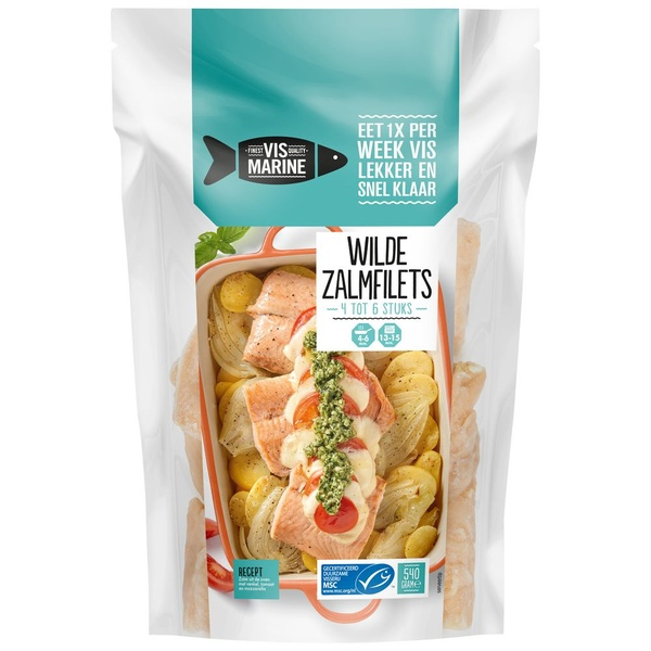 | Ingrediënten (allergenen in kapitalen) | Roze zalm (Oncorhynchus gorbuscha) (VIS) Ter bescherming en voor een optimaal behoud van de kwaliteit zijn de visfilets omhuld met een laagje ijs (10%). gevangen in de noordwestelijke Stille Oceaan (FAO 61) met korven en vallen (A*) / Gevangen in de noordoostelijke Stille Oceaan (FAO 67) met ringnetten en kruisnetten (B*). *Exacte herkomst staat met letter weergegeven achter de lotcode. |
