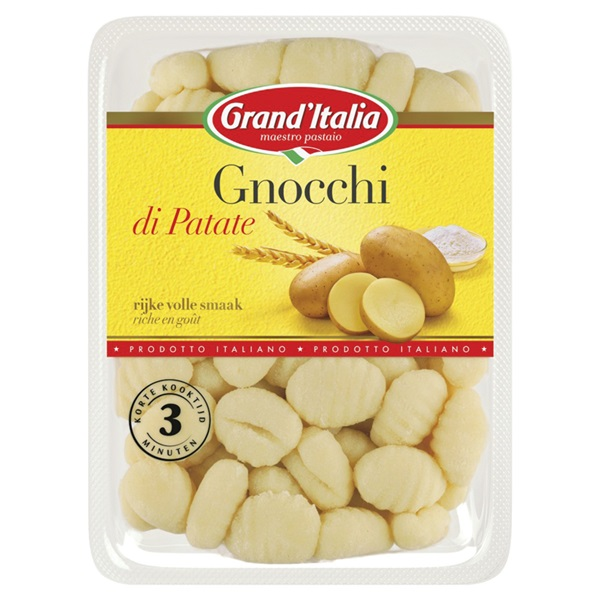 | Ingrediënten (allergenen in kapitalen) | Ingrediënten: Aardappelpuree (80%) (water, gedroogde aardappelvlokken), TARWEMEEL type "00" (18%), zout, natuurlijke aroma's, rijstmeel, zuurteregelaar: melkzuur, conserveermiddel: sorbinezuur Kan sporen bevatten van soja en mosterd. |