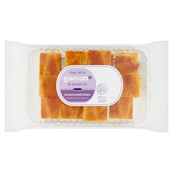 | Ingrediënten (allergenen in kapitalen) | TARWEBLOEM, 28% roomboter (MELK), glucose-fructosestroop, suiker, SCHARRELKIPPENEI, KARNEMELKPOEDER, zout, invertsuikerstroop, citroenschil, emulgator: E475/E471, kleurstof: carotenen, natuurlijk aroma. Dit product kan sporen van SOJA en NOTEN bevatten. |