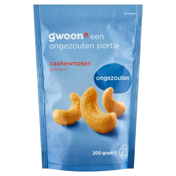 Gwoon cashew noten ongezouten Zak 200 GRM
