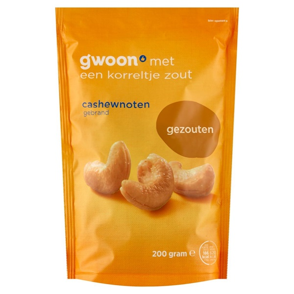 Gwoon cashewnoten gezouten Zak 200 GRM