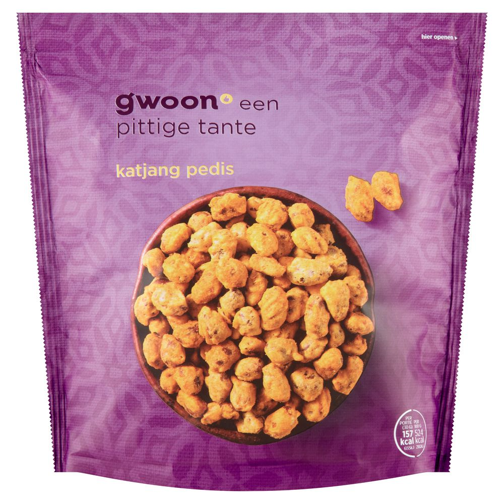 | Ingrediënten (allergenen in kapitalen) | 62% PINDA'S, TARWEMEEL, maïsmeel, maïszetmeel, zonnebloemolie, zout, suiker, SCHARRELKIPPENEIPOEDER, uipoeder, dextrose, specerijen (cayenne, gember, karwij, kardemon), knoflookpoeder, SOJASAUSPOEDER (SOJASAUS (water, SOJABONEN, TARWE, zout), zout, maltodextrine), gistextract, kerriepoeder (specerijen (kurkuma, komijn, koriander, fenegriek, venkelzaad, chilipoeder), maltodextrine, dextrose, zout, knoflookpoeder), extract van paprika, capsicumextract, aroma. Dit product kan sporen van NOTEN bevatten. |