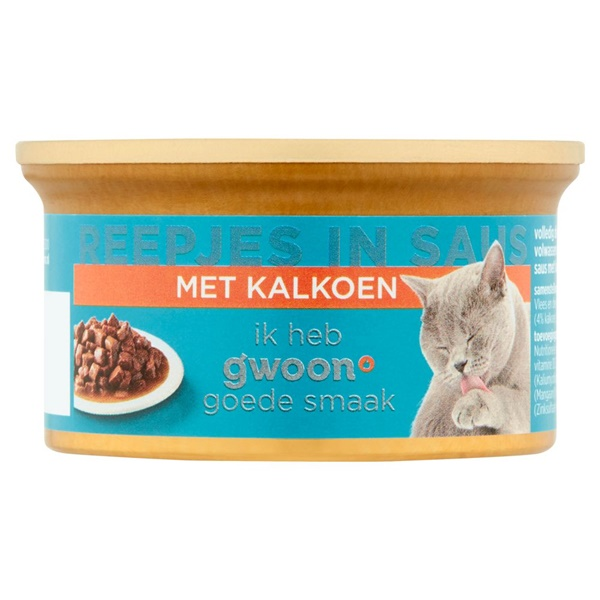 Gwoon kattenvoer reepjes in saus kalkoen Blik 85 gram