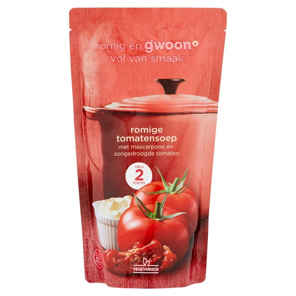 | Ingrediënten | Ingrediënten :77% Tomaat (tomaten uit tomatenpuree, tomatenblokjes, zongedroogde tomaat), wortelpuree, 5,2% volle MELK, water, plantaardige oliën (raapzaad, zonnebloem), 2% room (MELK), 1,4% mascarpone (MELK), cichoreivezel, gemodificeerd maïszetmeel, gistextract, zeezout, knoflook, magere MELKPOEDER, natuurlijke aroma’s, citroensapconcentraat, witte balsamicoazijn (witte wijnazijn, druivenmost, natuurlijk aroma), kleurstof: paprika-extract, specerijen, kruiden, SELDERIJ, voedingszuur: citroenzuur. |