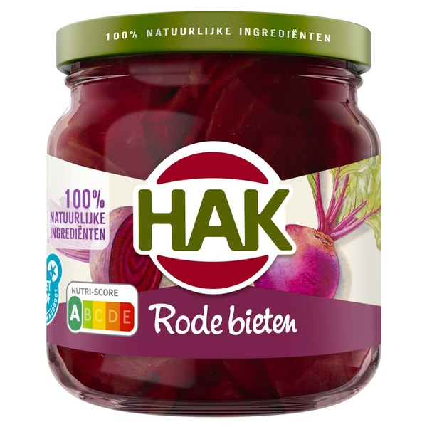 | Ingrediënten | ingrediënten: Rode bieten (76%), water, kruidenazijn, suiker, maiszetmeel, zeezout. |