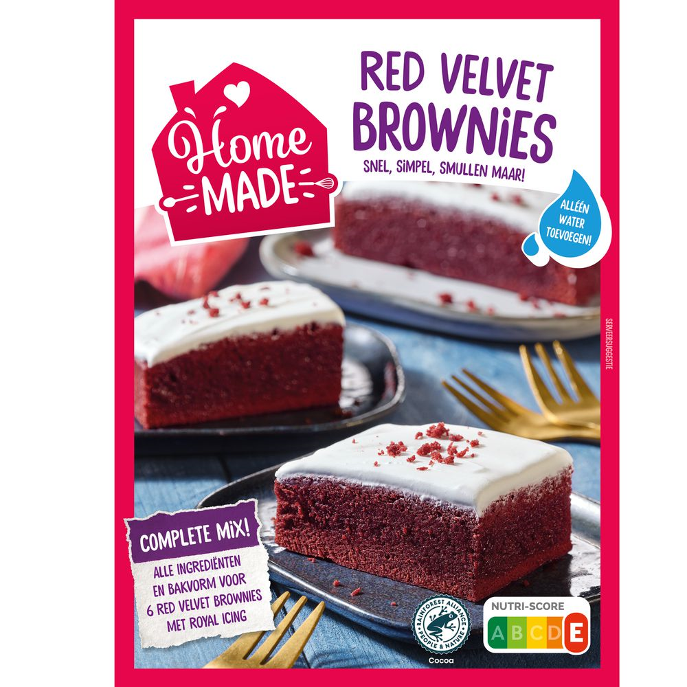 Home Made red velvet brownies Doos 355 GRM