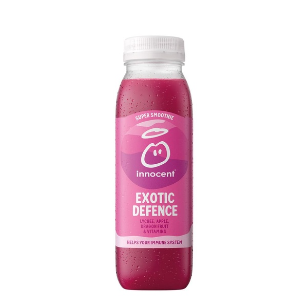 | Ingrediënten (allergenen in kapitalen) | 1 ½ geperste appels (67%), ½ geplette banaan, een beetje geperst appelwater, 1 geperste lychee (6.6%), wat geplette drakenvruchtpuree (3.2%), een scheutje limoensap, een scheutje citroensap, een scheutje rode biet- en wortelextract, en wat vitamines (B3, B5, B6, B7, B9, B12 en C) |