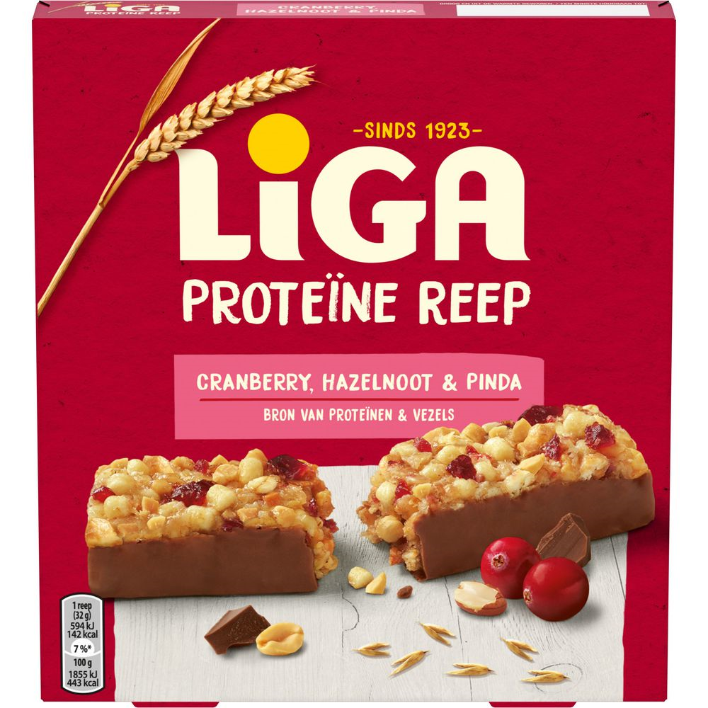 | Ingrediënten (allergenen in kapitalen) | HAVERVLOKKEN 14 %, krokante wei-proteïnestukjes 11 % [weiproteïne-concentraat (van MELK), weiproteïne-isolaat (van MELK), tapiocazetmeel], suiker, glucosestroop, stabilisator (sorbitol), plantaardige vetten (palm, shea), geroosterde PINDA'S 7,5 %, gezoete cranberries 7 % (suiker, cranberry stukjes 2,5 %, zonnebloemolie), invertsuikerstroop, VOLKORENTARWEMEEL, cacaoboter, honing 2 %, cacaomassa, magere MELKPOEDER, weipoeder (van MELK), HAZELNOOTSTUKJES 1 %, bevochtigingsmiddel (glycerol), MELKVET, TARWEZEMELEN, emulgatoren (SOJALECITHINEN, E471, E476), zout, GERSTEMOUTEXTRACT, aroma's, melasse.Kan ei en andere noten bevatten. |