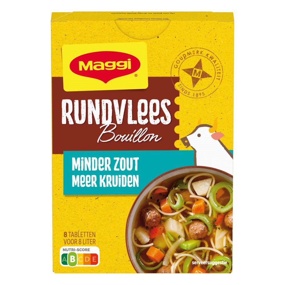 | Ingrediënten (allergenen in kapitalen) | Ingrediënten: Gejodeerd zout. smaakversterkers (E621. E635). maltodextrine. palmolie. gehydrolyseerd plantaardig eiwit (TARWE-eiwitten. zout. zonnebloemolie). gistextract. suiker. aroma's. rundvleespoeder 2.2%. groenten (ui. wortel. tomaten. prei). kleurstoffen (karamel. riboflavine). GERSTemoutextract. peterselie. SELDERIJ. antioxidant (rozemarijnextract). Bevat mogelijk: MELK. EIEREN. SOJA. VIS. |