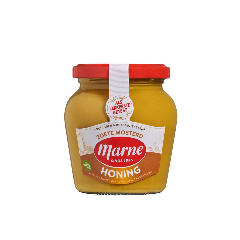 | Ingrediënten (allergenen in kapitalen) | Ingrediënten: water, MOSTERDZAAD, suiker, 7% honing, kruidenazijn, natuurazijn, zout, kurkuma, aroma. |