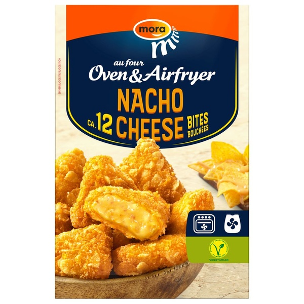 | Ingrediënten (allergenen in kapitalen) | Ingrediënten: 44% vegetarische kaasvulling (water, 22% Goudse kaas (MELK), 12% extra gerijpte Cheddar kaas (MELK), boter (MELK), kruidenmix (dextrose, paprika, natuurlijk aroma, kruiden, specerijen, ui, knoflook, zout, citroenconcentraat, maltodextrine, gistextract, raapzaadolie), MELKeiwitten, gemodificeerd aardappelzetmeel, emulgatoren: E331, E452, bamboevezel, zuurteregelaars: E500, E330, zout, zonnebloemolie, stabilisator: E461, kleurstof: annatto bixine), paneermeel (TARWEbloem, zout, gist, kurkumapoeder, paprikapoeder, kleurstoffen: paprika-extract, curcumine), doorhaalmiddel (water, glucosestroop, witte basterdsuiker (suiker, invertsuikerstroop), TARWEbloem, dextrose, stabilisatoren: E464, E466, zout, TARWE-eiwit), 9% cornflakes (maïs, zout, GERSTEMOUT), plantaardige oliën (palm, raapzaad, zonnebloem), 5% tortilla chips (bloem (TARWE, maïs), zout, suiker, emulgator: E471). Kan sporen van PINDA bevatten. "E"-nummers zijn door de EU goedgekeurde hulpstoffen. |