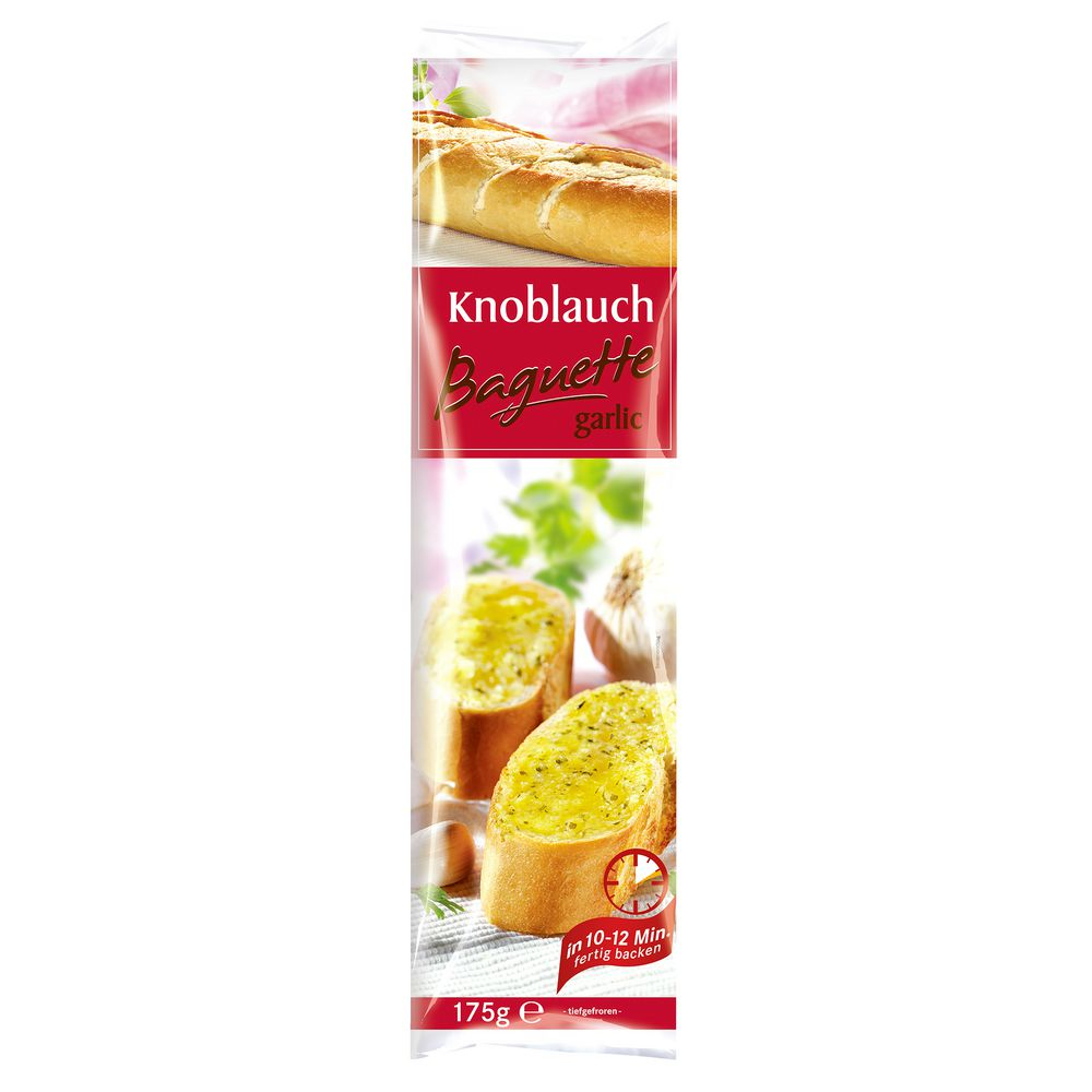 | Ingrediënten | Ingrediënten: Tarwe stokbrood [TARWEBLOEM, water, zuurdesem (water, TARWEBLOEM, TARWEZEMELEN, volkoren ROGGEMEEL), gist, zout, ROGGEBLOEM, TARWEGLUTEN, durum TARWEGRIESMEEL], 20 % knoflookmargarinebereiding [76 % margarine* (kokosvet, zonnebloemolie, wate |