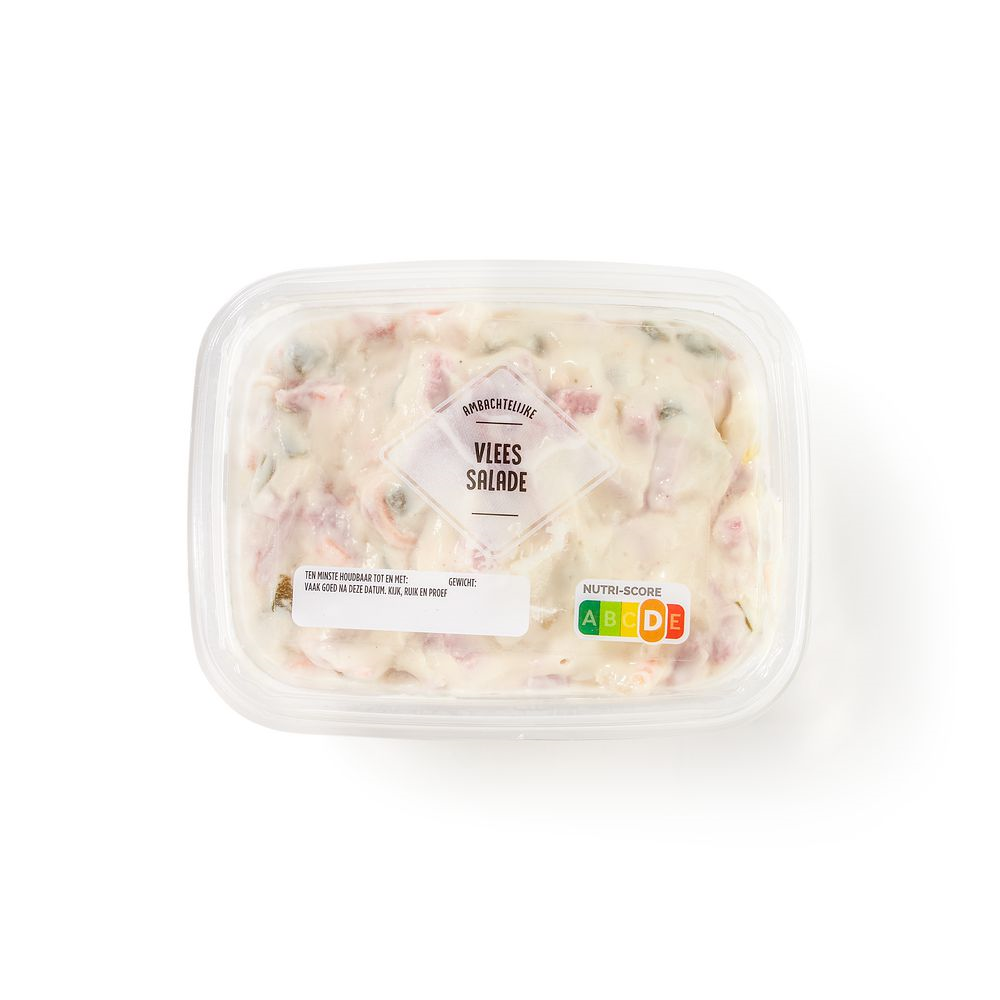 | Ingrediënten (allergenen in kapitalen) | Ingrediënten :34% boterhamworst (87% varkensvlees*, water, aardappelzetmeel, zout, varkenseiwit, dextrose, specerijen, emulgator: E451, antioxidant: E301, conserveermiddel: E250, natuurlijk aroma, aroma (bevat MOSTERD)), water, raapzaadolie, 8% augurk, 5% appel, suiker, 3% wortel, azijn, maïszetmeel, VRIJE-UITLOOPKIPPENEI-EIGEEL, gemodificeerd maïszetmeel, ui, zout, conserveermiddel: E202/E211, voedingszuur: E330, witte peper, verdikkingsmiddel: E415, bieslook, antioxidant: E300. * = Beter Leven keurmerk 1 ster |