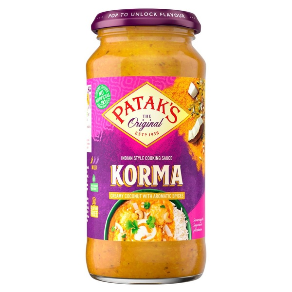 | Ingrediënten | Ingrediënten: water, room (MELK) (8 %), kokosroom(6 %), suiker, gedroogde kokos (4,5 %), raapzaadolie,gemodificeerd maïszetmeel, geconcentreerde tomatenpuree,gemalen specerijen (0,5 %), geconcentreerd citroensap, zout,gedroogde ui, gemberpuree, knoflookpuree, voedingszuur(melkzuur), gedroogd korianderblad.Kan ook aardnoten (pinda's) en noten bevatten. |