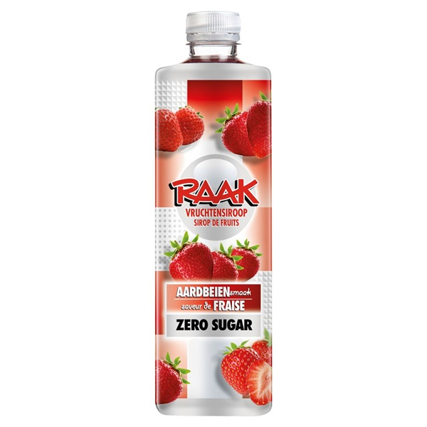 Raak zero suger vruchtensiroop aardbei Fles 750 ml