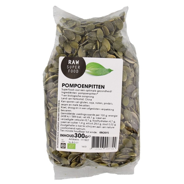 | Ingrediënten | Ingrediënten: Pompoenpitten*. *=van biologische oorsprong. kan sporen bevatten van gluten, soja, noten, sesam en melk. |