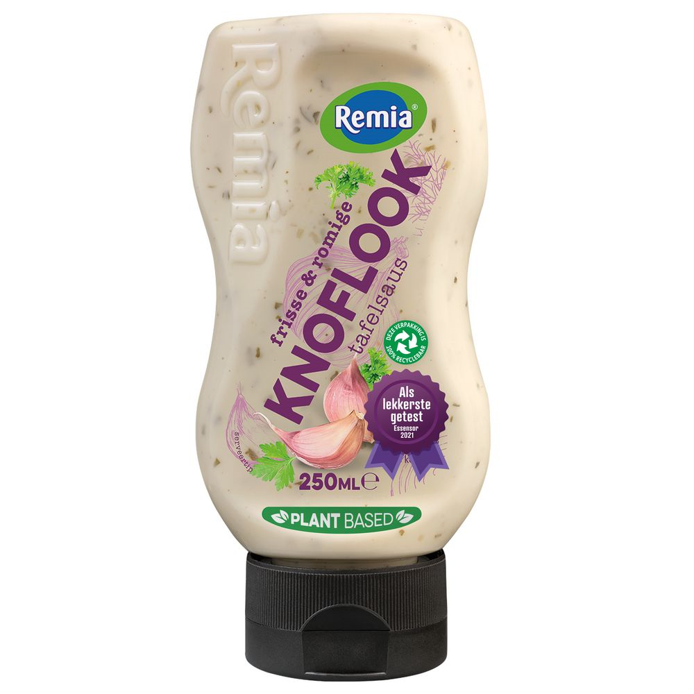 | Ingrediënten (allergenen in kapitalen) | Ingrediënten: water, raapolie, suiker, azijn, gemodificeerd zetmeel (mais en aardappel), ui, MOSTERD (water, MOSTERDZADEN, azijn, specerijen), kruiden, verse gehakte knoflook 1,4%, zout en zeezout, ui concentraat, voedingszuren: melkzuur en citroenzuur, natuurlijk aroma, verdikkingsmiddel: guarpitmeel, specerijen, antioxidant: E385, conserveermiddel: kaliumsorbaat. |
