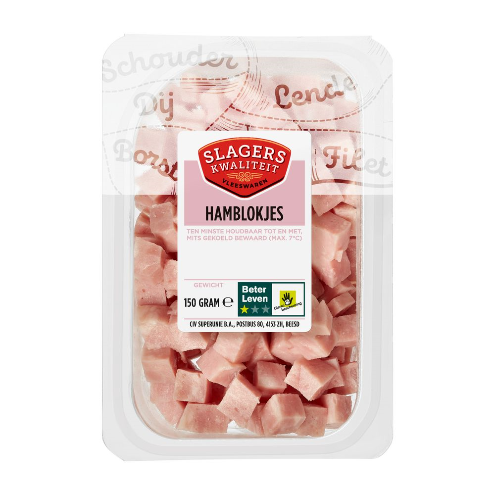 Slagerskwaliteit hamblokjes Bakje 150 GRM