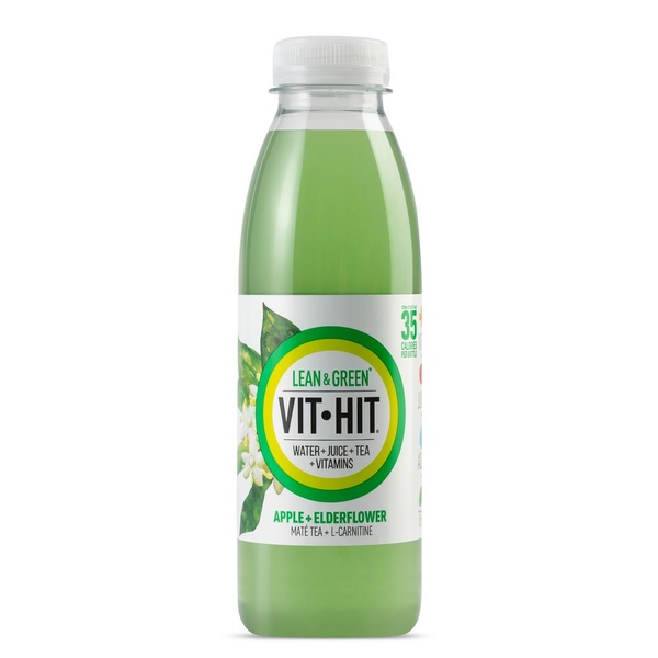 | Ingrediënten (allergenen in kapitalen) | Ingrediënten: Water, geconcentreerd appelsap (12%), aroma's: natuurlijke vlierbloesem (0,03%), en andere smaakstoffen, antioxidant: ascorbinezuur, voedingszuur: citroenzuur, Maté extract (0,048%), L-carnitine, stabilisatoren: Arabische gom, glycerolesters van houthars, zoetstof: sucralose, vitaminen (vitamine C, thiamine, niacine, vitamine B6, foliumzuur, vitamine B12, biotine, pantotheenzuur), natuurlijke kleurstoffen: kopercomplexen van chlorofyllen en chlorophyllinen, karamel. |