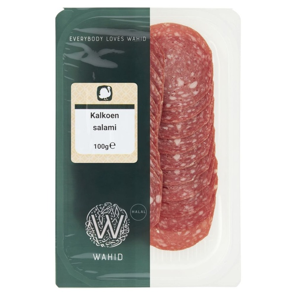 | Ingrediënten (allergenen in kapitalen) | Mechanisch gescheiden Halal kalkoenvlees (57 g gebruikt voor de bereiding van 100 g eindproduct), Halal kalkoenvlees (45 g gebruikt voor de bereiding van 100 g eindproduct), Halal kalkoenvet 22 g gebruikt voor de bereiding van 100 g eindproduct), LACTOSE , zout, MELKpoeder, dextrose, rookaroma, knoflook en specerijen, antioxidant (E301, E331iii), conserveermiddel (E250), kleurstoffen (E160c, E162). Herkomst van vlees: EU. |
